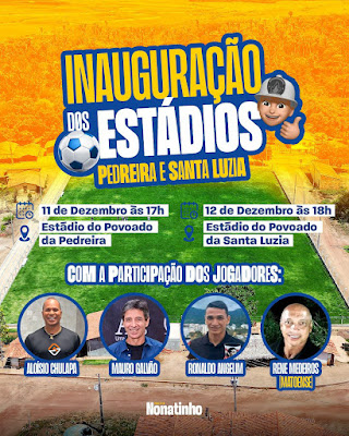 Nas inaugurações constam a construção dos estádios de futebol dos Povoados Pedreira e Santa Luzia. Aloísio Chulapa, Mauro Galvão, Ronaldo Angelim e o matoense Renê Medeiros.Grandes, considerados como grandes nomes do futebol brasileiro estarão presentes, celebrando ao lado da população essa grande conquista para o esporte de Matões.